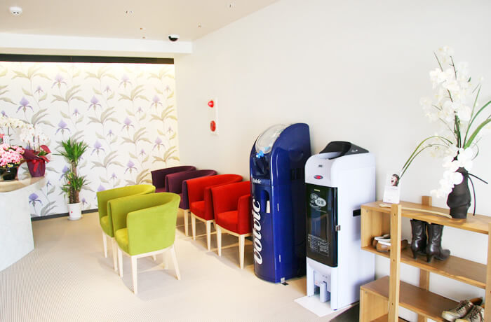 受付がお済みになられましたら、こちらの待合室で診療の時間までしばらくお待ちください。1人がけのカラフルなソファーでリラックスしておくつろぎください。またウォーターサーバーをご用意しておりますのでご利用くださいませ。