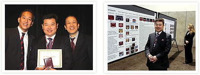 適切な技術と知識、経験を得る為の海外でのトレーニングや研修は特にインプラントのような進歩を続ける医療分野においては重要なものです。いえ絶対に必要と言っても良いでしょう。そのためには年に数回は必ず海外研修に出かけます。それには、スタッフも必ず同行します。手術に携わる者にとって、世界の最前線の治療を、自分の目で見て耳で聞くことが重要だと考えているからです。研修には世界中から歯科医が参加します。時には中継ネットで数ヶ所の研修会場を結び、手術の経過をリアルタイムで各会場へ向けて放送することもあります。つまりメインとなった会場での手術は世界各国で多くの参加者の見守る中で行われるというわけです。ある研修でライブ手術に参加したときは、なんと世界中で2000人もの参加者がブラウン管を通して見ていたそうです。私はメイン会場でしたから実際に目の前でその経過を見ることができました。それは非常に参考になりますし、技術の向上はもちろんのこと、意識の上でも良い刺激を受けます。文字や写真だけの知識では得られない生の体験は、何ものにも勝る学習ということです。スタッフたちもそういった機会を重ねることで、患者様からの質問に具体的に即答できます。患者様への細やかなフォローとしても非常に大切なことだと思います。さらにもう一つ、トレーニングを受けることの重要なポイントがあります。メンバーが研修で新しい情報をキャッチすると、すぐさまグループ内において徹底されるということです。その情報によって昨日までのものをすぐさまレベルアップのために脱ぎ捨てなければならないこともあるかもしれません。その覚悟で私はトレーニングを受けています。だからこそ、患者様それぞれに合わせたインプラント治療を皆様に提供できるのです。もちろんオールオン4にも自信をもっています。お任せ下さい。