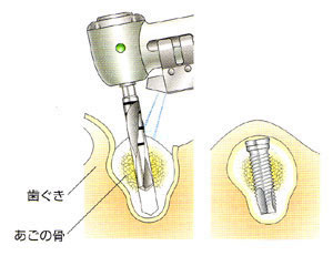 歯ぐきを開いて人工の歯を取り付ける準備をします。この状態で、歯ぐきが治るまで1~6週間おきます。