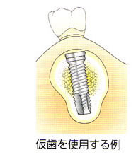 一次手術後、3~6ヵ月後の治療期間をおくことでインプラントと骨が強い力で結合します。(オッセオインテグレーション)。この期間、仮の歯を使用できる場合もあります。